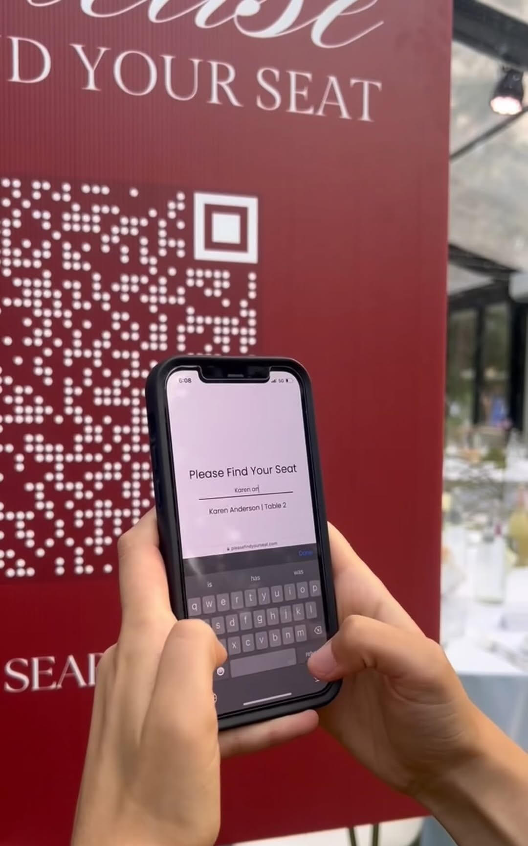 We set up a QR signage at the venue where guests can scan and instantly see their assigned table using our web interface. No public name lists, no crowding and no paper charts.