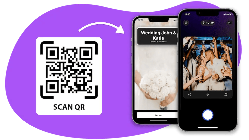 Our branded digital disposable cameras let guests capture the event from their own pov with their phone either a set photo limit or unlimited shots. Every image is instantly saved to a private gallery for you to relive afterward.